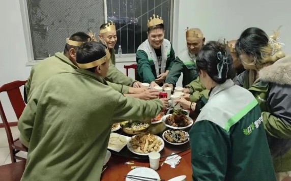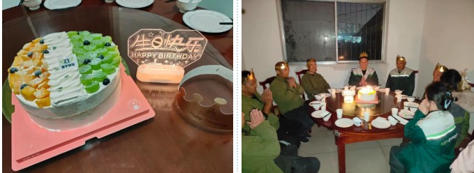 壽星們圍坐,燭光逐一亮起時,有人閉目凝神,有人望向身側(cè)的同事,輕聲許下心愿。從許愿時的真誠,到吹蠟燭時的歡呼,再到飯桌上的暢聊,這場生日會傳遞的不僅是溫暖,更是振宇物流“以人為本”的核心價值觀。它讓員工感受到企業(yè)不只是工作的平臺,更是并肩前行的“家人”,成長不只是個人的奮斗,更有團隊的托舉。
